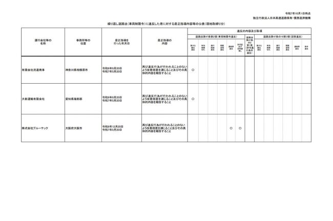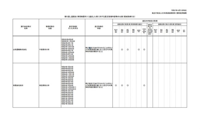 NEXCO西日本は2025年10月9日、高速道路の「車両制限令」違反を繰り返している事業者への是正指導の内容を公表しました。悪質なケースでは事業者名の公表が行われています。