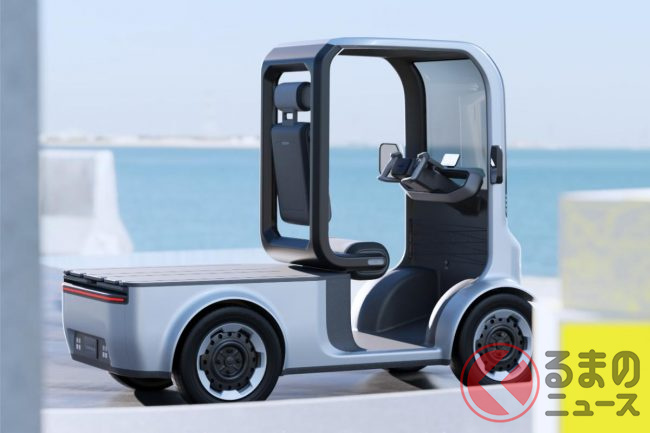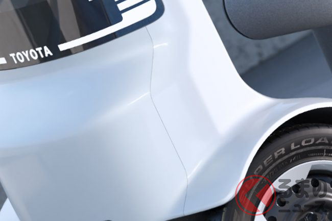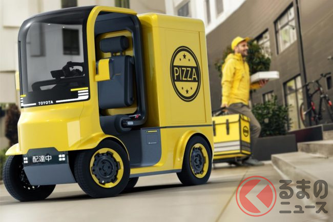 特徴について、トヨタの開発担当者は、「この車両は、一人で荷物を運べる配送用途から、後部に屋台を架装しての移動販売まで、幅広い使い方を想定しています」と説明。ボディサイズは未公表ながら、ミニカー規格を想定しているとのこと、小さな軽トラのような存在感です。