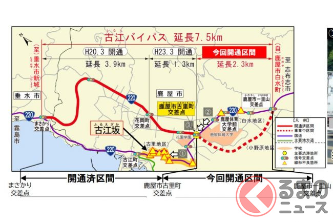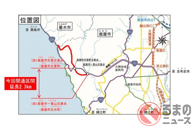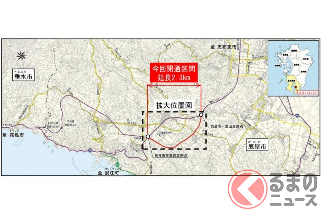 鹿児島県内の国道220号で「古江バイパス」が2025年12月6日に開通します。