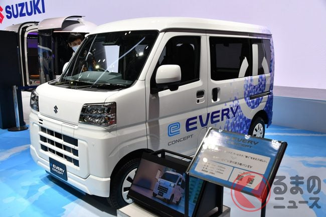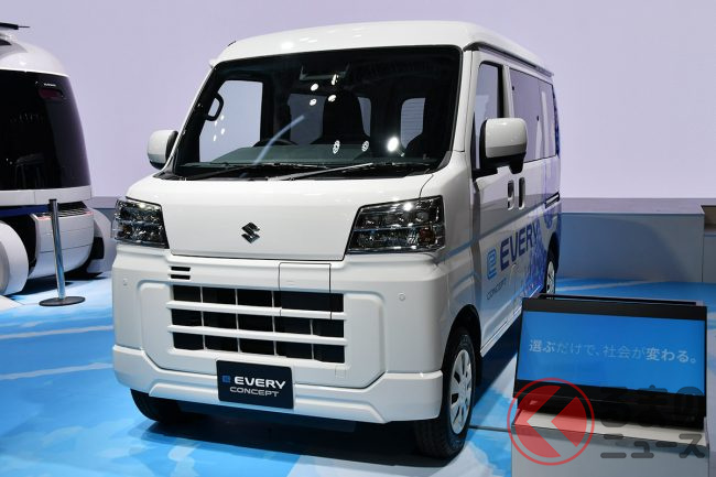 スズキは「ジャパンモビリティショー2025」にて「eエブリイ(イーエブリイ)」を参考出品しました。これは、トヨタ・ダイハツ・スズキの3社が共同開発している軽ワンボックスバンのBEV仕様ですが、スズキは独自のサービスを展開するようです。