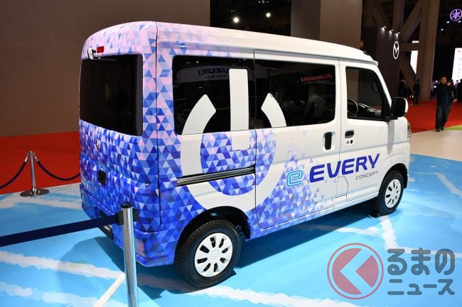 スズキの新型「軽ワンボックスバン」がスゴい! 中身はダイハツ、顔はSUZUKI! パワフル&静かな加速で200km走れる! 新型「eエブリイ」で使える画期的サービスとは?