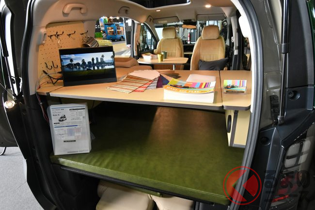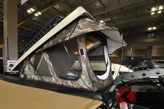 ポップアップルーフをはじめFFヒーター、サブバッテリー・走行充電システム、ベッド、テーブル、カーゴラック、ボディフルラッピング、リフトアップキット、オフロードタイヤなどを組み込んだフルオプション仕様となっており、761万2000円(消費税込み)のプライスタグが提示されていました。