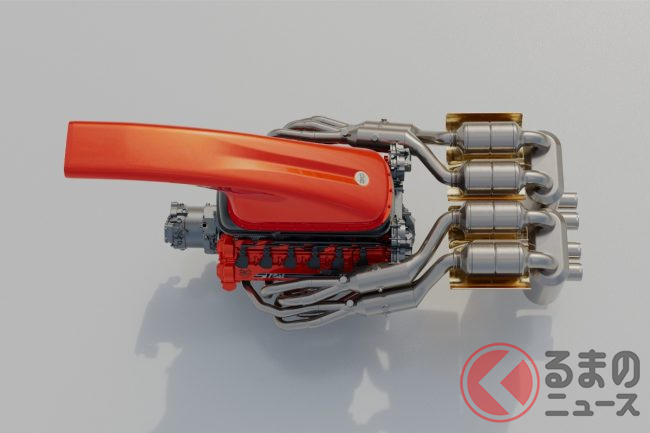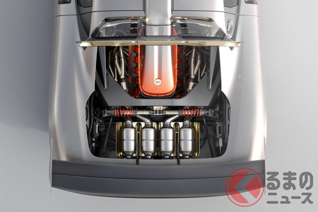 圧縮比は14.0:1、最高回転数は1万2100rpmに達します。吸排気系の応答性を極限まで高め、インコネル製エキゾーストシステムには18金製の断熱材まで使用されるという徹底ぶりです。