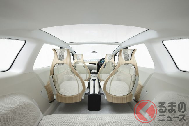 エクステリアは、フロントのシザードアとリアのスライドドアを組み合わせた独創的なドア構造を採用。さらに、フロントから後席までを貫く広大なガラスルーフが、キャビン全体に圧倒的な開放感をもたらしています。