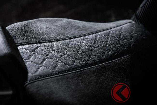 シートはブランド特有のBRABUSマスターピースレザーとディナミカマイクロファイバーを組み合わせて手作りされており、中央にはBRABUSロゴがエンボス加工で施されています。