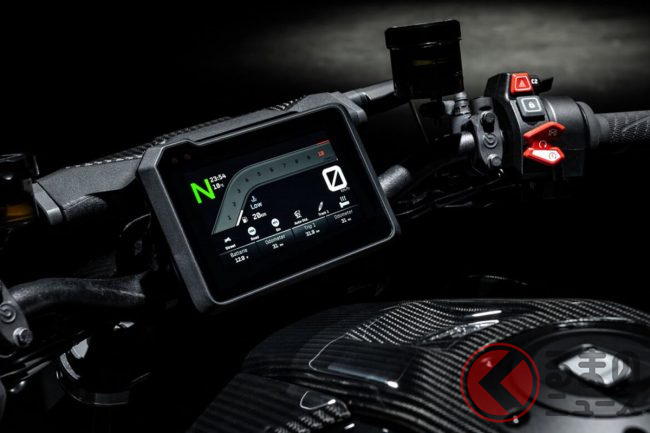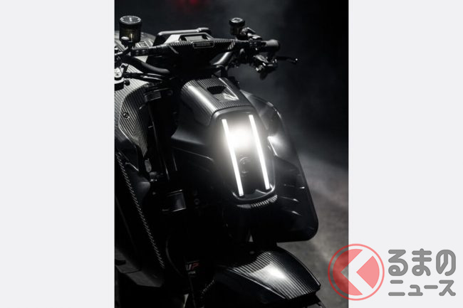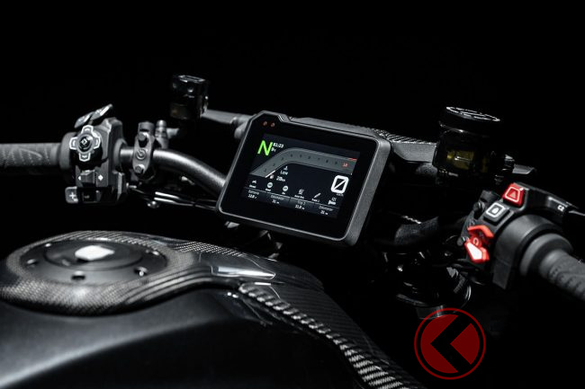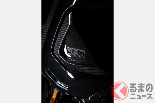 ボディワークにはカーボンファイバー製のパーツがふんだんに採用されており、フロントフェンダーや独自のデイタイムランニングライトを持つLEDヘッドライトユニット、サイドスポイラー、燃料タンクフェアリング、アンダーカウルといった精密に設計されたコンポーネントが、ダイナミックな輪郭を強調しています。