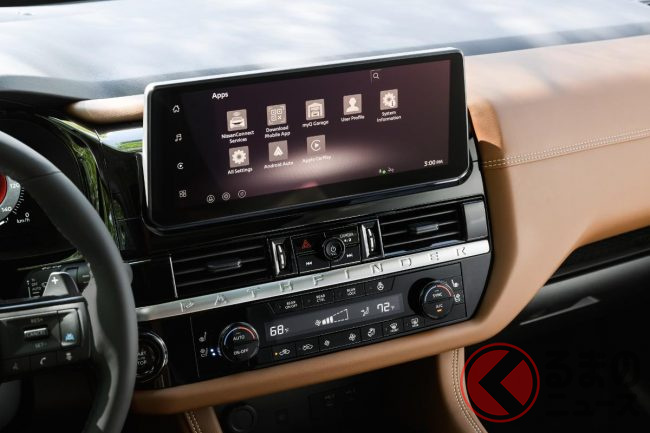 新型パスファインダー2026年モデルは、車内のテクノロジー面でも大きな進化を遂げています。