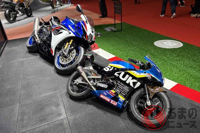 スズキ「GSX-R1000」がポケバイで登場? JMS2025スズキブースに展示された「ミニGSX-R」の正体とは? 市販化を求める声も
