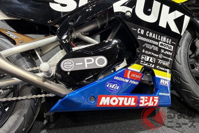 ジャパンモビリティショー2025で展示された“ミニGSX-R”は、こうしたチームの取り組みを象徴する車両です。パワーユニットは最新版の電動モペット「e-PO」から、フロントサスペンションやホイールはかつて販売されていた「チョイノリ」のパーツをそれぞれ流用し、ワンオフ製作されたアルミフレームに搭載しています。