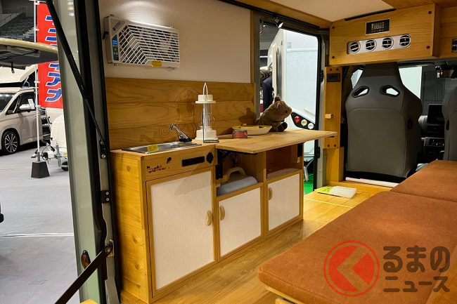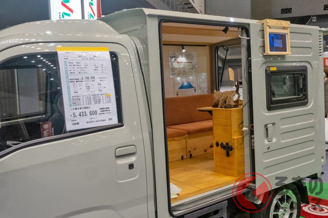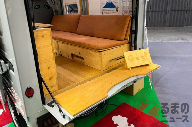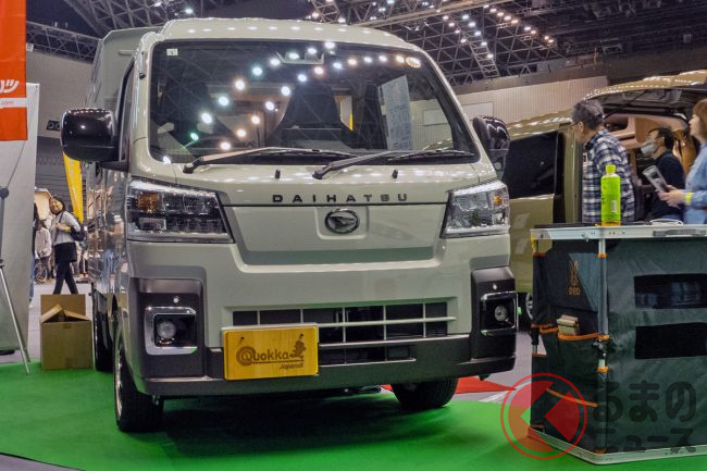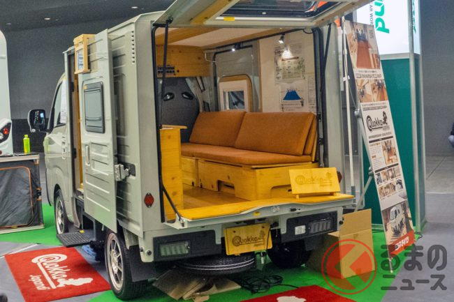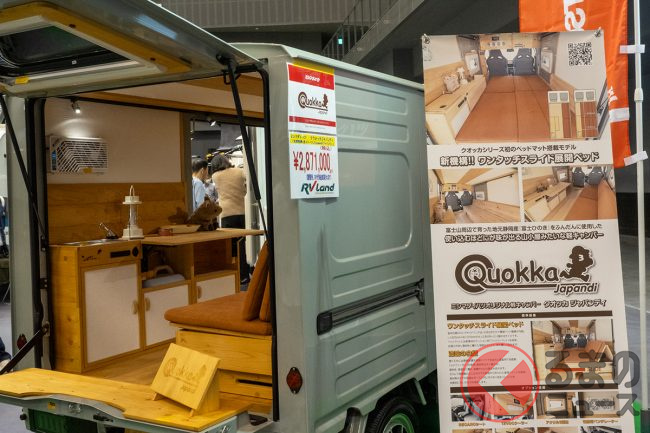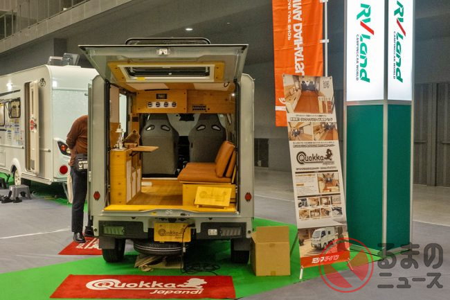ミシマダイハツは「ハイゼットトラック パネルバン」をベースにしたオリジナル軽キャンパー「クオッカ japandi」を「福岡キャンピングカーショー2025」で実車展示しました。