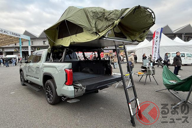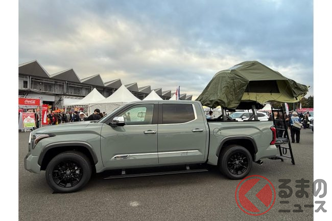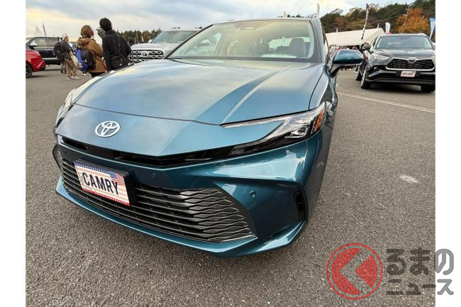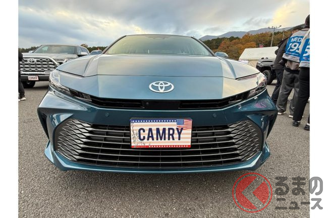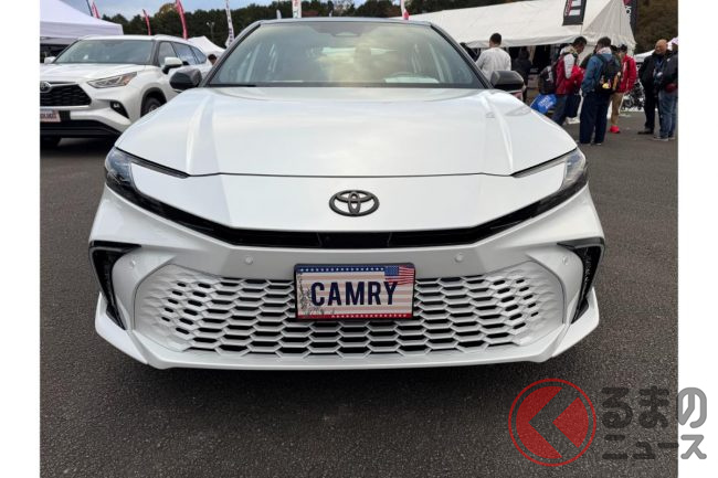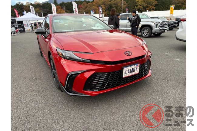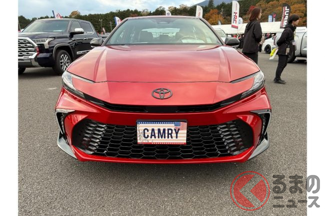 トヨタが「カムリ」日本展示! 全長5m級セダンに熱視線!? 人気3列SUVや全長6mタンドラも! 「日本未導入」トヨタ車とは