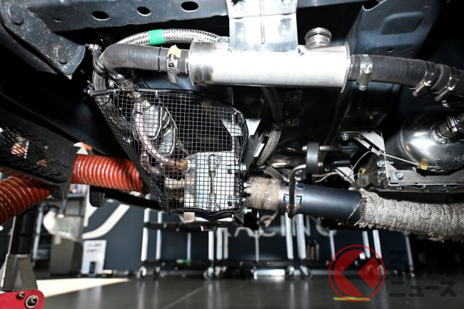 具体的には、ディーゼルエンジンを搭載する55号車(MAZDA SPIRIT RACING MAZDA3 Bio concept)の排気システムに、CO2回収装置が組み込まれました。