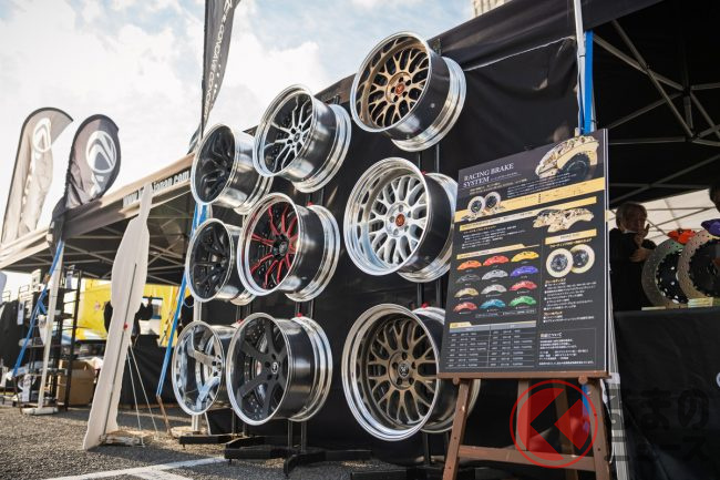 イベント当日は、新商品となる鍛造のブレーキキャリパーキットやオリジナルの車高調キットの展示・販売を行い、走りにこだわりを持つD1ファンからも熱視線を集めていました。