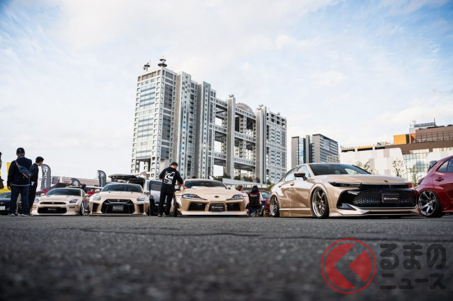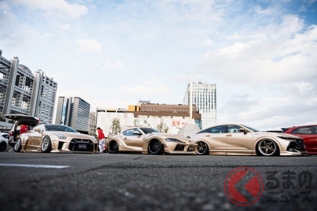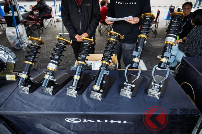 カスタマイズパーツ販売などを手がける「KUHL(クール)」グループが冠スポンサーを務めるイベント「KUHL RACING presents 2025年D1グランプリシリーズ 第9戦&第10戦 in お台場」が、2025年11月15~16日に開催されました。ドリフト競技の傍らで、オリジナルの車高調キットの展示・販売や、それらのアイテム類を装着したコンプリートカーなどを展示する「KUHLミーティング」も行われました。