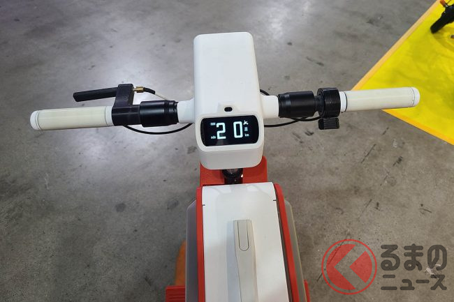 36V 10Aのバッテリー、リヤタイヤに600Wのインホイールモーターを搭載してスロットルレバーの操作で走行します。走行テストも重ねているそうで、現在は最高速度が20km/hの特定原付クラスを想定しているそうです。