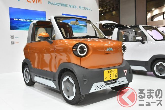 全長2.5m級! 超小型「“2人乗り”軽乗用車」に注目! 後輪駆動の“快速”性能×解放感で「十分に満足です」! 精悍「シーサー」顔もカッコいい「ちょうどいいサイズ」エイム「EVM」がスゴい