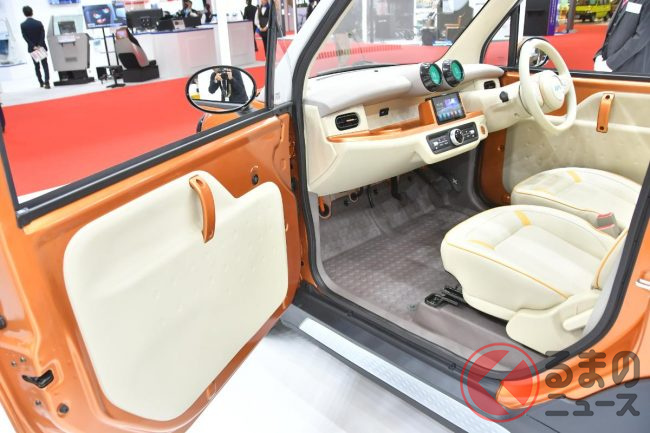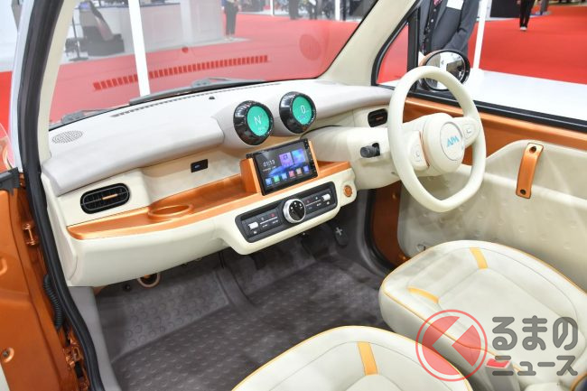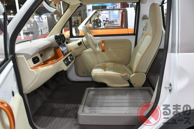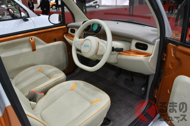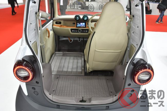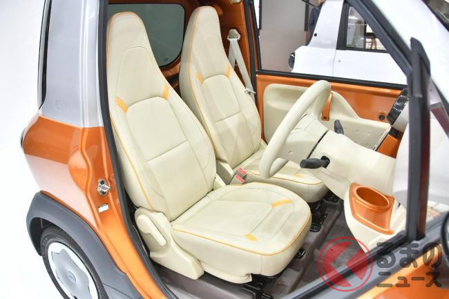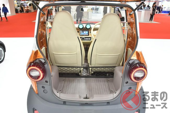 そんな超小型モビリティのEVMは2人乗りで、全長2490mm×全幅1295mm×全高1560mmと、一般的な軽乗用車よりもコンパクトなサイズを特徴とします。