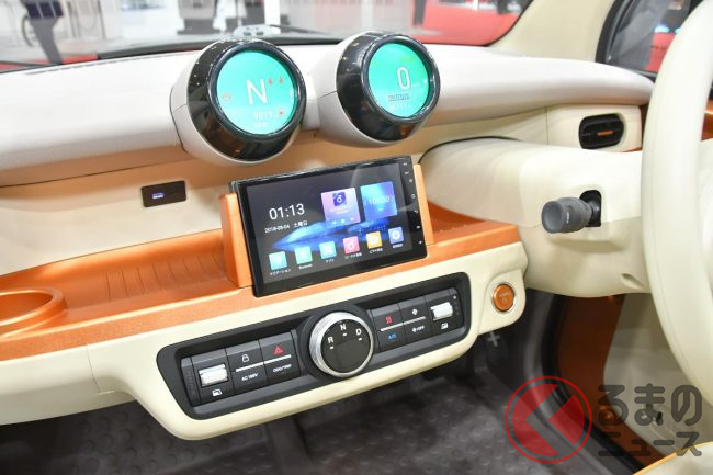 そのため、インテリアに備わる装備も2眼式の液晶マルチメーターやスマホ接続可能な7インチモニター、ハンズフリー電話も可能なステアリングスイッチ、パワーウインドウにエアコンと、一般的な軽自動車並みかそれ以上のものが標準となっているのもポイント。