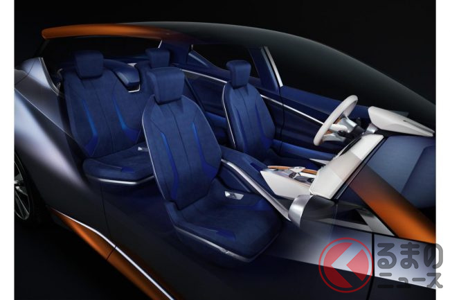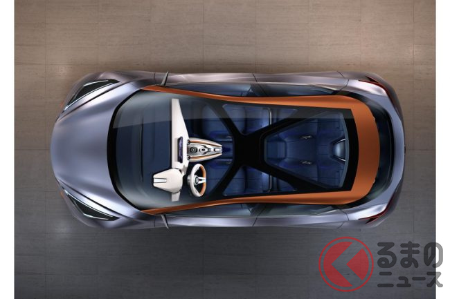 コンセプトカーではこの構造材をオレンジ色で強調し、ブルーグレーのボディとの対比によって浮遊感を演出しています。