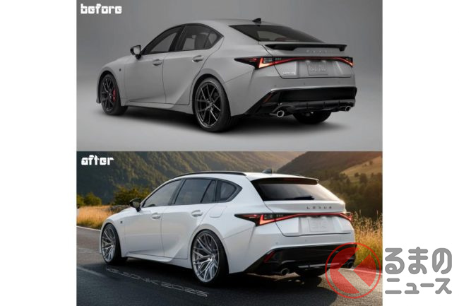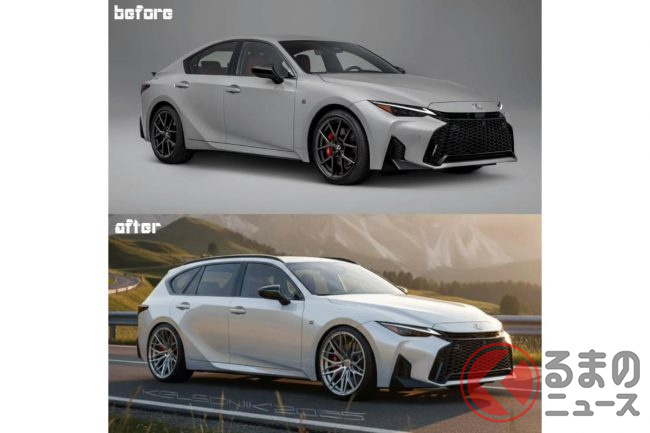 レクサスのスポーツセダンのひとつである「IS」は、2025年9月に3度目となるビッグマイナーチェンジモデルが初公開されました。そんなマイナーチェンジ版ISのステーションワゴンモデルをデジタルクリエイター「kelsonik」氏が予想し、CGを作成しました。どのような仕上がりなのでしょうか。