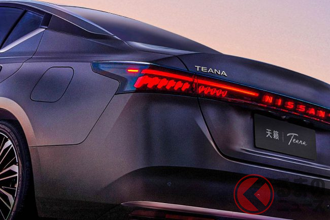 7年ぶり復活! 日産「新型ティアナ」がスゴイ! “フーガ級”の全長4.9mサイズ×赤い「NISSAN」文字ロゴ採用! 上質内装もイイ中国「新セダン」とは