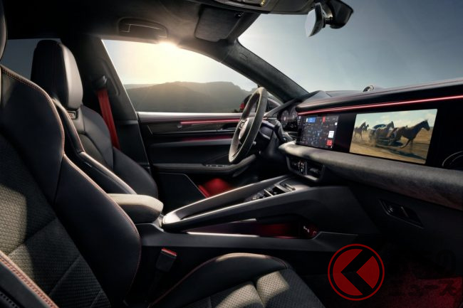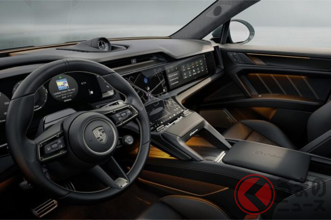 また空力面では、可動エアフラップやアダプティブルーフスポイラー、ターボ専用の可変リア“エアロブレード”などを組み合わせた「Porsche Active Aerodynamics(PAA)」を採用。走行状況に応じて空力特性を最適化し、高速安定性と航続距離の向上に寄与しています。