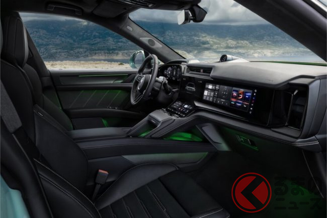 「1100馬力」超え! 新型「“5人乗り”SUV」世界初公開! スーパーカー並スペックの「高性能モデル」! 斬新「曲がってるモニター」×可変“ウイング&エアロ”がスゴいポルシェ「カイエン エレクトリック」欧州で登場