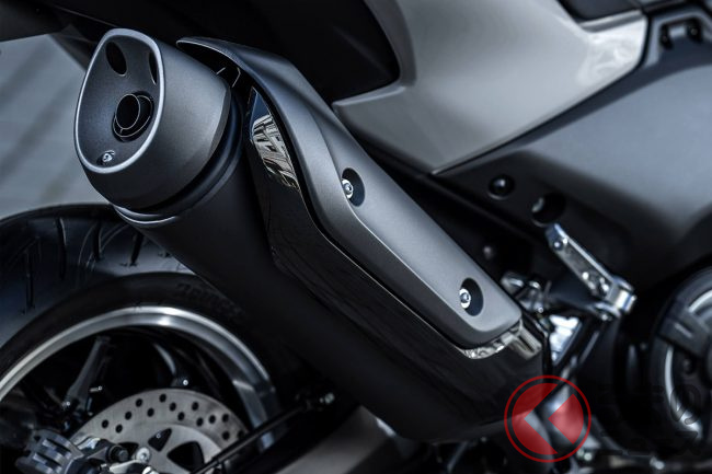 また、上級モデルのTMAX560 TECH MAX ABSには、新たなブランドカラーとして“クリスタルグラファイト”を採用。このカラーは、「MT-09」などのエンジンにも採用され好評を博しており、金属よりも金属らしい独特の質感が特徴です。これを車体色に取り入れることで、“プレミアム&高品質”なイメージを一層高めています。