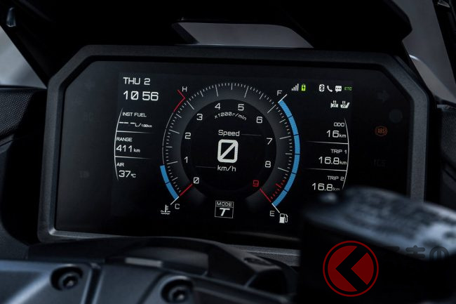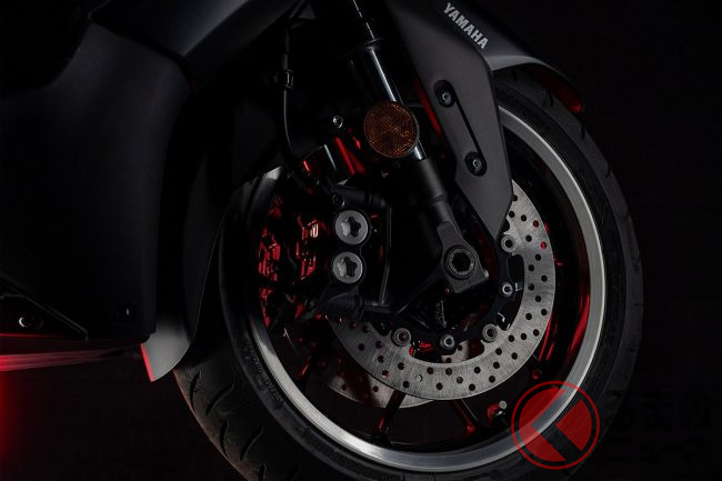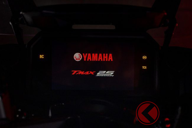さらに、サイドカバーにはTMAXレッドクロームエンブレムが、レッグシールド中央部には25周年記念の特別エンブレムがそれぞれ配置されています。メーターディスプレイも専用仕様となり、起動時に25周年記念ロゴを表示するほか、ホイールにはアルミ本来の素材感が映える切削ホイールが装備されるなど、記念モデルならではの特別な仕様となっています。
