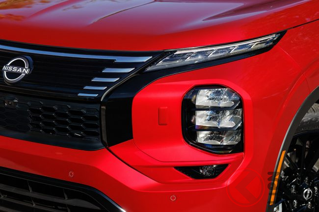 アウトランダーPHEVをベースとしながらも、フロントグリルに「Vモーション」デザインを採り入れることで日産らしさを表現。さらにホイールやドアミラーカバー、ロアグリルなどをブラックで統一することで精悍な印象をもたらしています。