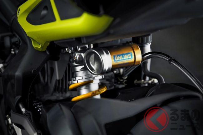 足回りには、ハンドリングと走行性能を向上させるため、細かな設定が可能なオーリンズ製のNIX30倒立フロントフォークとSTX40ピギーバックリアショックを採用しています。ブレーキシステムには、ブレンボ製Stylema 4ピストンキャリパーとMCS可変レシオブレーキレバーが組み合わされました。