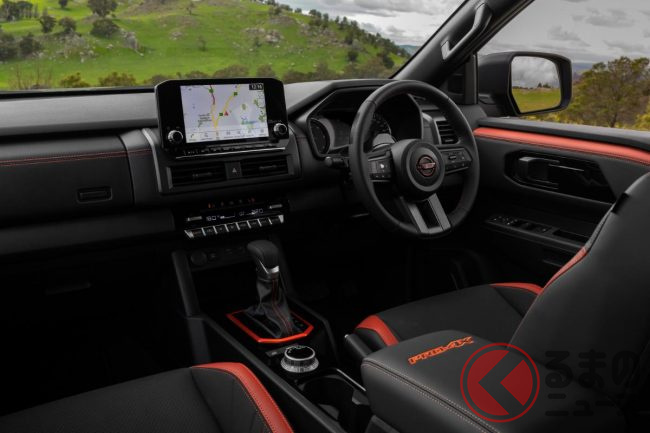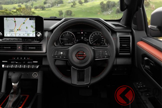 日産「新型“5人乗り”本格四駆」世界初公開! 強化ブルバー×「溶岩レッド」アクセントがカッコいい! 極限の“走破性”実現した「ナバラ PRO-4X ウォーリア」豪州モデルがスゴい!