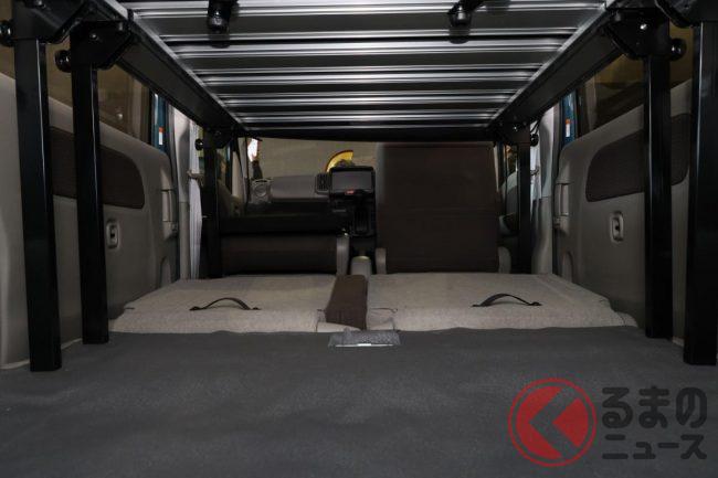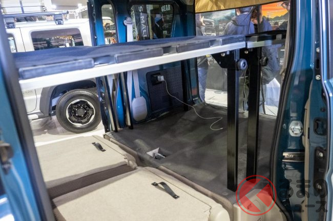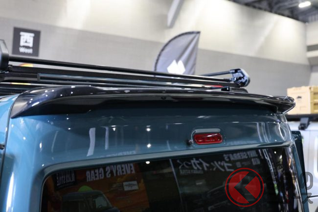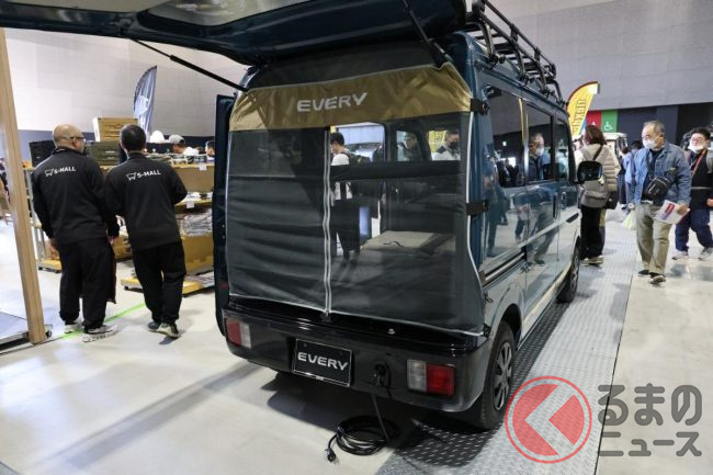 展示車両は、このエブリイ Jリミテッドに、キャンプや車中泊で人気の純正アクセサリーを装着し、「より気軽に楽しめる」仕様に仕上げられています。