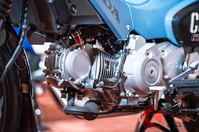パワーユニットには、最高出力3.5kW(4.8PS)/6000rpm、最大トルク6.9N・m(0.70kgf・m)/3750rpmを発揮する排気量109cc空冷4ストローク単気筒OHCのロングストロークエンジンを搭載しています。