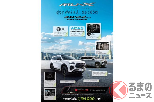 いすゞのタイ法人は2025年10月22日、ミドルSUV「MU-X(ミューエックス)」の改良モデルに新たなキャッチコピー「THE NEXT PEAK」を付けて発表しました。