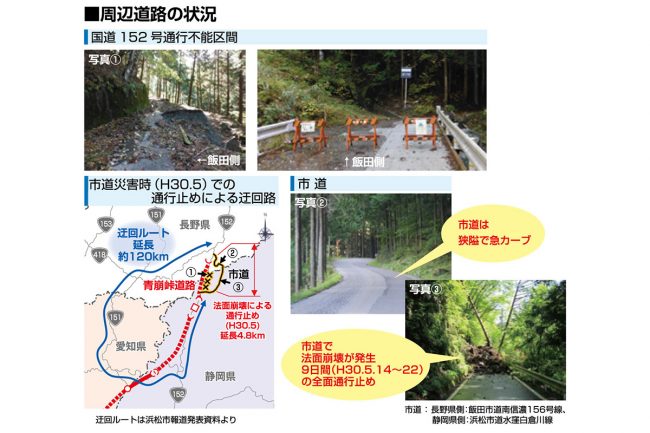 現行の迂回路である市道や林道は狭隘で脆弱であり、災害時には寸断されるリスクが常に伴います。