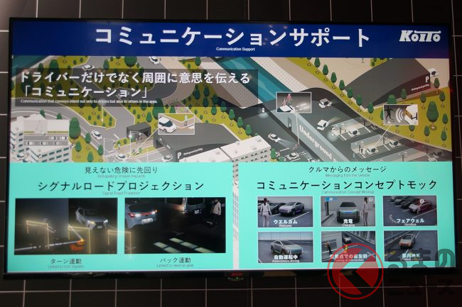 2025年10月29日から11月9日まで東京ビッグサイト(東京都江東区)で開催された「ジャパンモビリティショー(JMS)2025」で小糸製作所は、シグナルロードプロジェクション搭載のヘッドランプユニットをはじめ、さまざまな出展をおこなっていました。