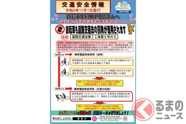 2026年度から施行! 自転車の「ながらスマホ」に厳しい措置! クルマ・バイク並みになった「ルール変更」の詳細とは