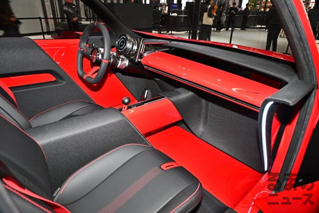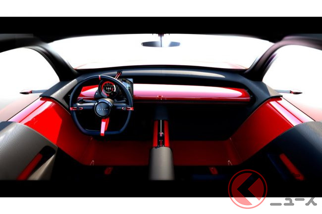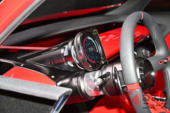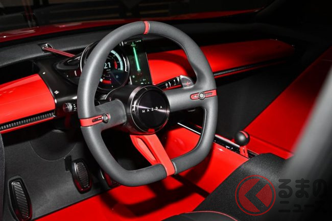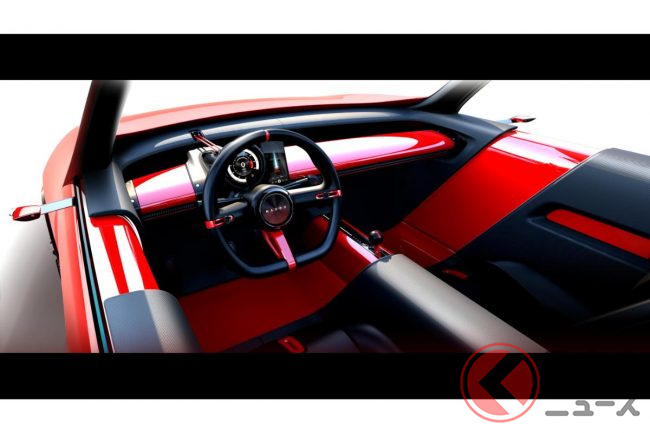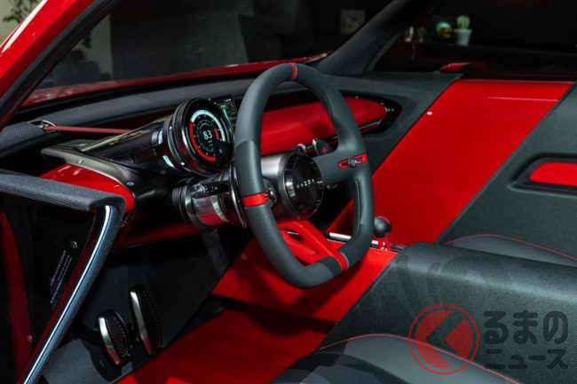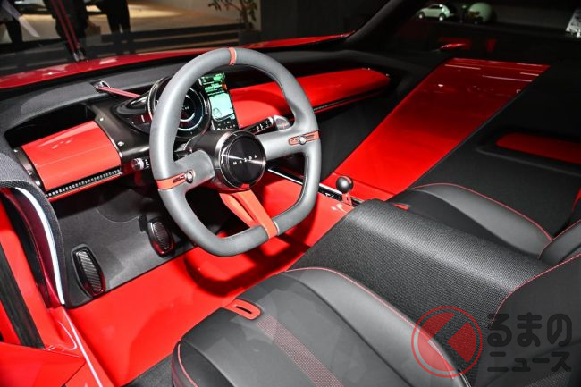 インテリアは、大型ディスプレイを極力減らし、メインメーターとスマホスペースのみのシンプル構成。木元さんは「クルマ本来の魅力である運転の楽しさを増すため」と説明し、運転そのものに没入できる思想を込めています。