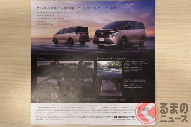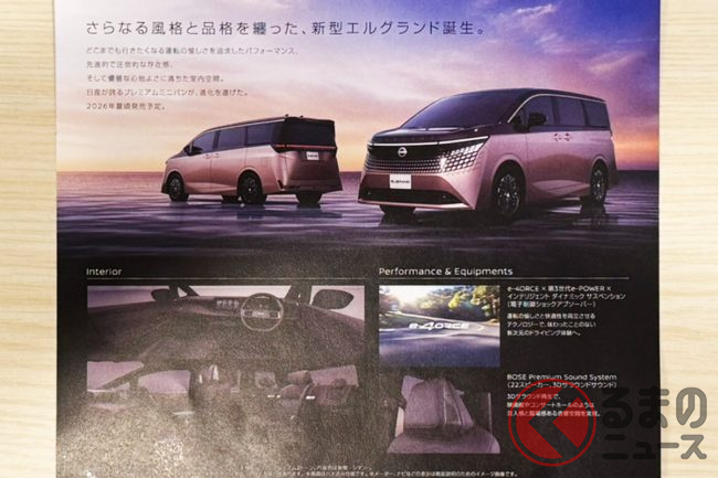 日産が2025年10月29日に発表した新型「エルグランド」。すでに販売店には多くの問い合わせがあるようです。またティザーパンフレットの配布も行われているようです。
