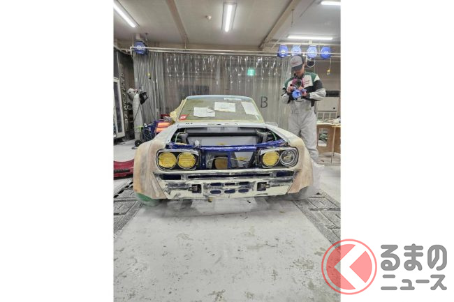 これをベースに現代風にアレンジしたハコスカの「顔」を取り付け、内装も高級感がある雰囲気に変更。さらに車検に適合させ、公道走行を目標としています。