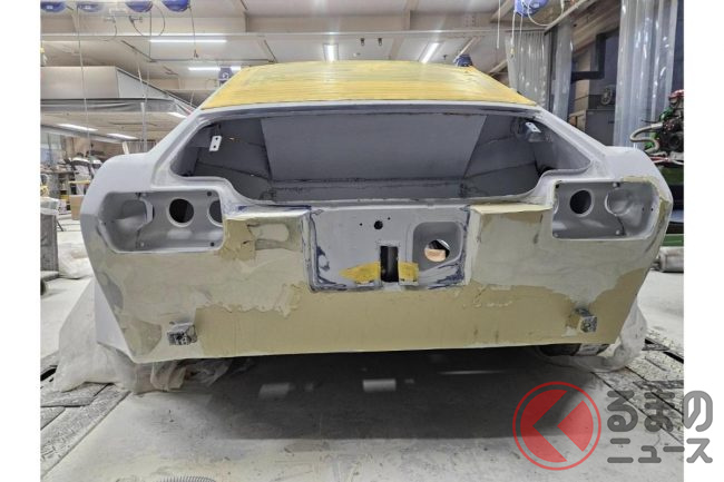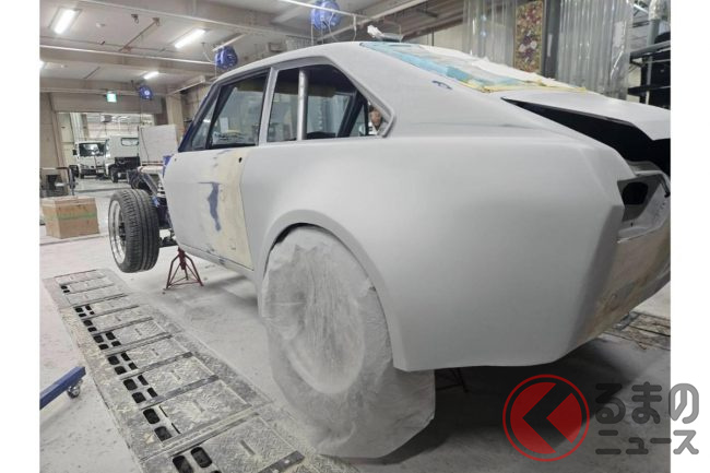 11月中旬時点の製作状況は、すでに完成形が見え始めており、フロントとリアは下処理やマスキングを実施して塗装の前段階の状態。ドアもサーフェイサーの吹付けやミラー、ドアハンドルの取り付けが終了しているとのことです。