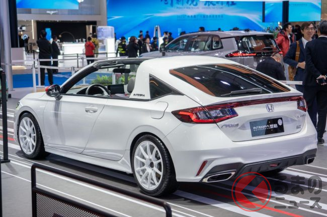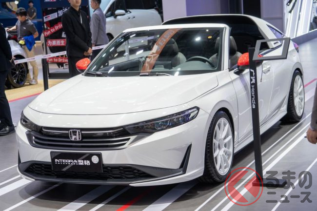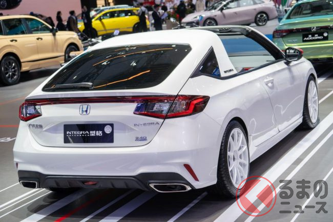 広州モーターショー2025にて、ホンダは「インテグラ」を「2ドア・タルガトップ」に大胆改造したオープン仕様を公開しました。斬新なモデルの登場にユーザーから多くの注目が集まっています。