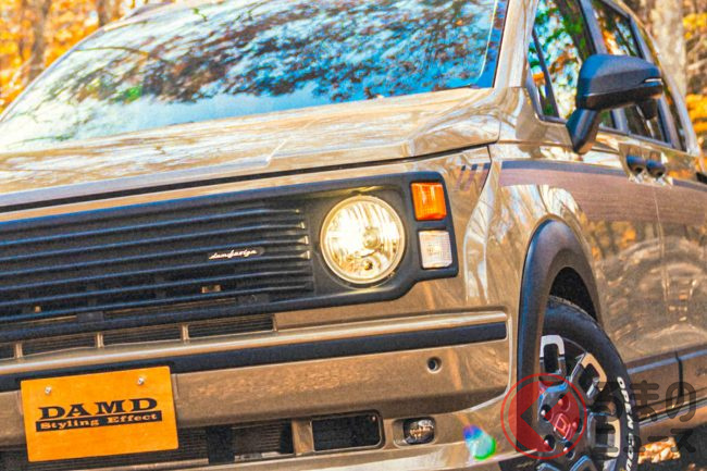 “旧車デザイン”のホンダ最新型「コンパクト“ミニバン”」発表! 丸目ライト×カクカクボディがイイ! 全長4.3m級のちょうどいい「フリード」に「DAMD FREED ISOLATOR」誕生