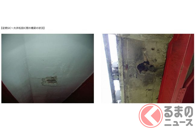 日々多くの車両が利用することもあってか、東名高速が開通してから50年余りが過ぎた現在は、全体的にかなり老朽化が進んでいます。