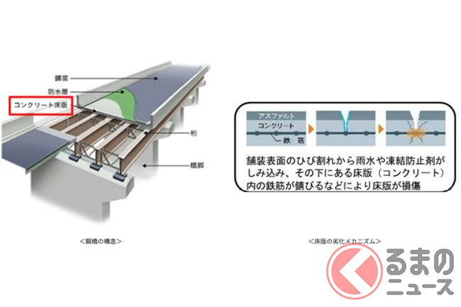 NEXCO中日本はこれまで補修や補強を実施してきましたが、抜本的な解決を図るべく、今回の工事で、同区間で耐久性が高いコンクリート床版に取り替えるリニューアル工事を行います。