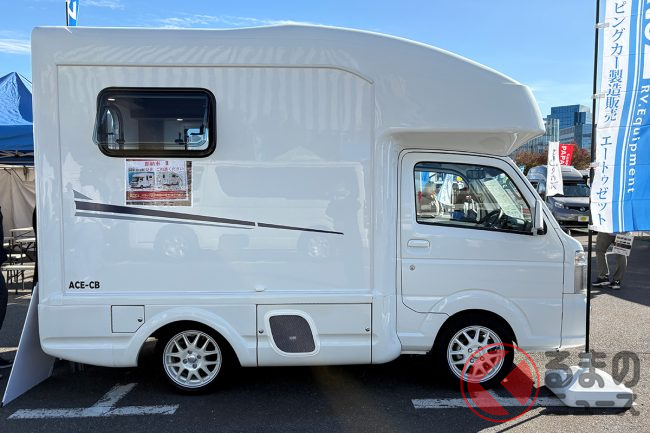 お台場キャンピングカーフェア2025にて、AtoZの軽キャブコン「ACE-CB」が実車展示され、来場者の注目を集めていました。どのような特徴があるのでしょうか。