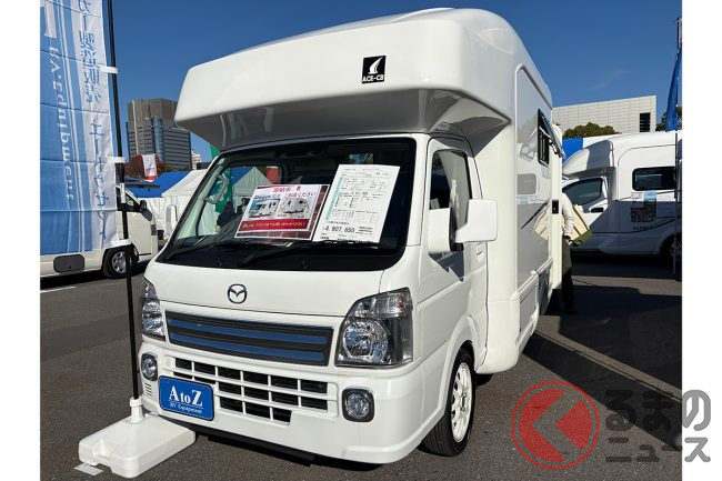 マツダの「“家族4人寝られる”軽トラ」キャンパーに注目! 立って歩ける「ひろびろ空間」全長3.7mの「超ちいさいサイズ」で実現!? AtoZのスクラムトラック“車中泊”モデル「ACE-CB」がスゴい
