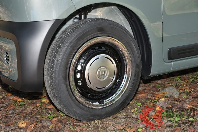 今回新たに登場するN-BOX カスタムのブラックスタイルでも、フロントグリルガーニッシュやフロントフォグランプガーニッシュ、ドアミラーカバー、リアの車名エンブレム、そして15インチアルミホイールなどがブラックとなります。
