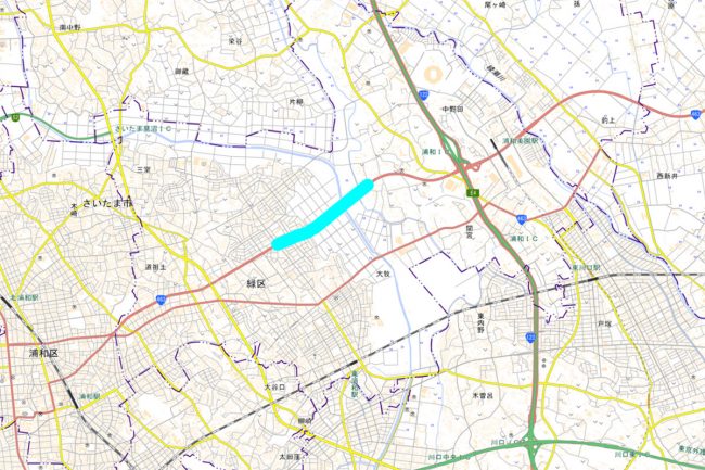 越谷浦和バイパスは、越谷から入間に向け、埼玉南部を横断するように走る国道463号のバイパスで、国道4号の北越谷から「埼玉スタジアム2002」のある浦和美園、東北道の浦和ICと国道122号、さいたま市緑区の中心部を通り、浦和駅の西側で国道17号と接続します。